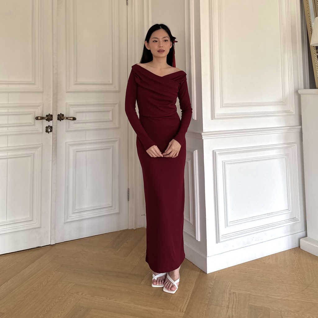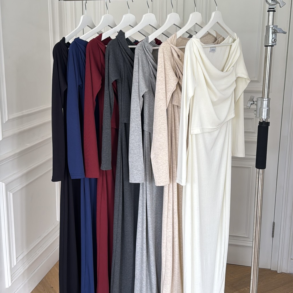 Dress Korea LAMBDA DRESS | Basic Dress Panjang Wanita Rib Knit Basic Terusan Maxi Dress Korean Basic Long Dress - snj28