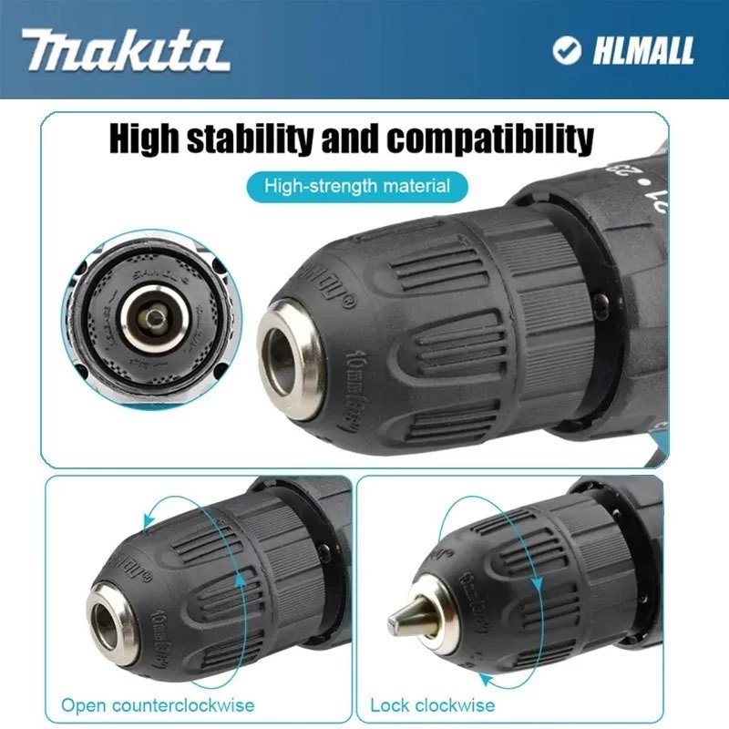 MAKlTA 766V Mesin bor 2baterai cas 10mm bor listrik Tangan Cordless murah bor tangan baterai besi tembok Beton kayu - Co