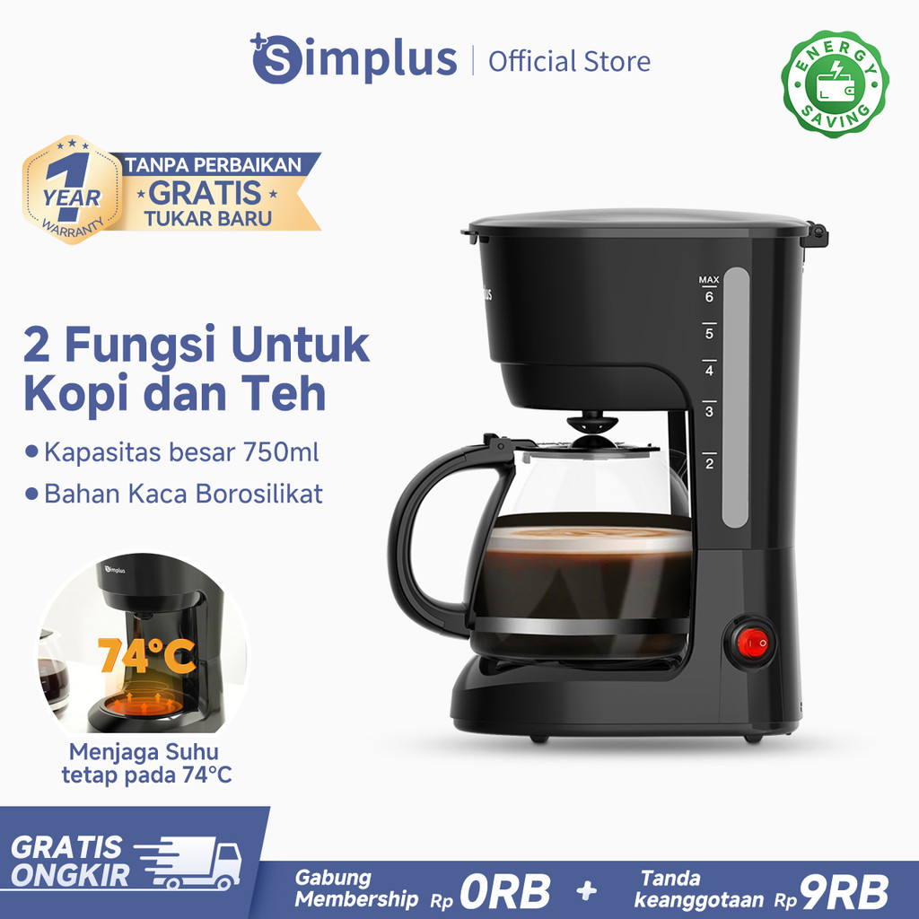 Simplus Mesin Kopi Tipe Drop Peralatan Rumah Tangga 750ml 2 Fungsi Untuk Kopi dan Teh