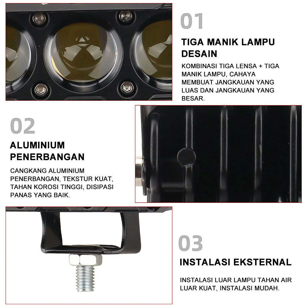 HIGHSEA STORE SQL 3 Mata Lampu Tembak Laser Alumunium Premium SQL 3 Putih Kuning 150W IP68 Waterproof DC 9V-85V
