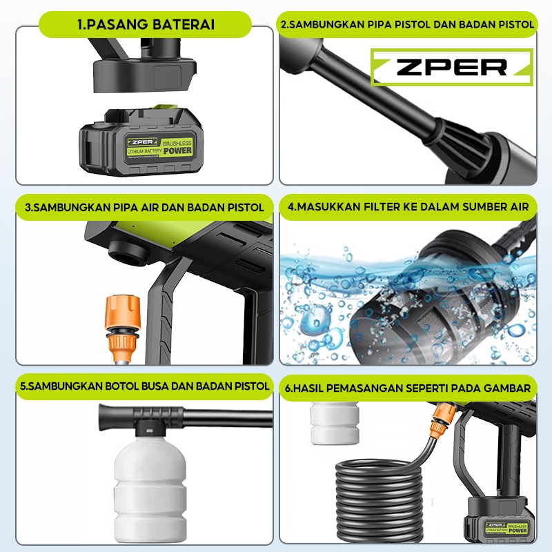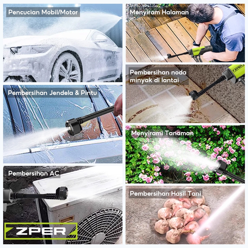 ZPER Alat Cuci Mobil Air Tekanan Tinggi Alat Portable Nirkabel Untuk Nyuci Mesin Cuci Lithium ZP005