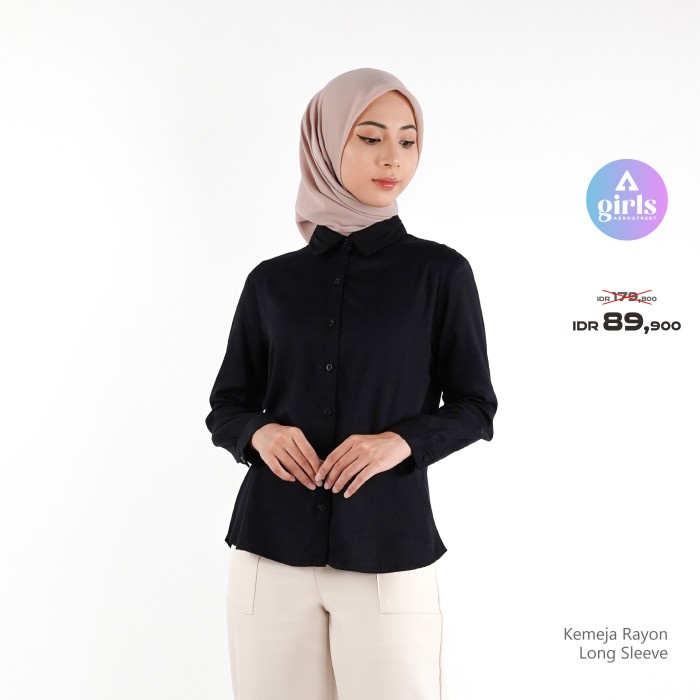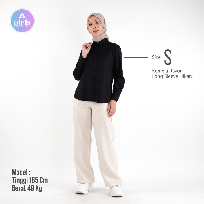 SEALANE STORE Aerostreet Kemeja Rayon Panjang Hikaru Black Gelap Woman QEAAA