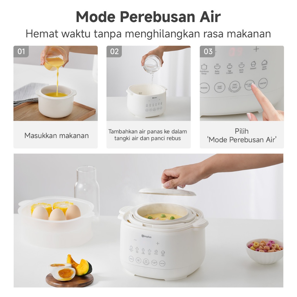 Simplus Slow Cooker Listrik 1L Panci Rebus dan Kukus dengan Menu Preset Cerdas