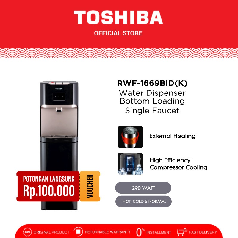 [POTONGAN LANGSUNG]TOSHIBA Dispenser Galon Bawah RWF-1669BID(K) | Air Dingin & Panas Instan | Compressor Cooling Hemat Listrik