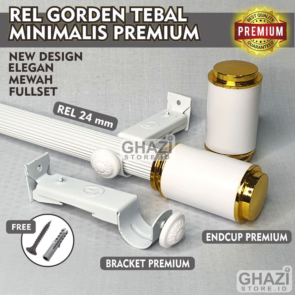 GHAZI STORE Batang Gorden Tebal Premium 24 mm Rel Gorden Fullset Endcup Minimalis Elegan Mewah