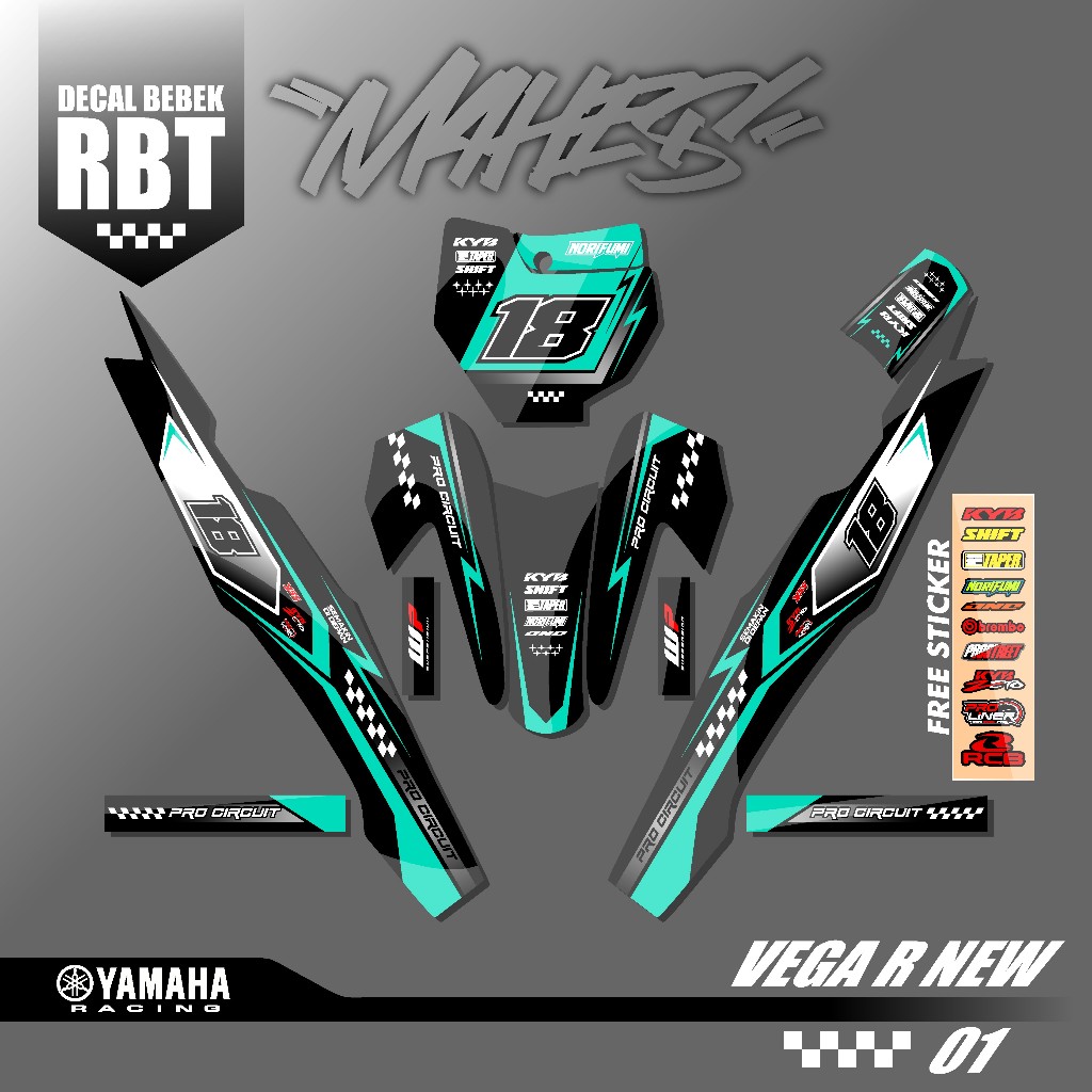 TDT - Decal Stiker RBT VEGA R NEW Sticker Variasi Striping Bebek Modif BRT GTX Trill Supermoto Trabas Desain Racing