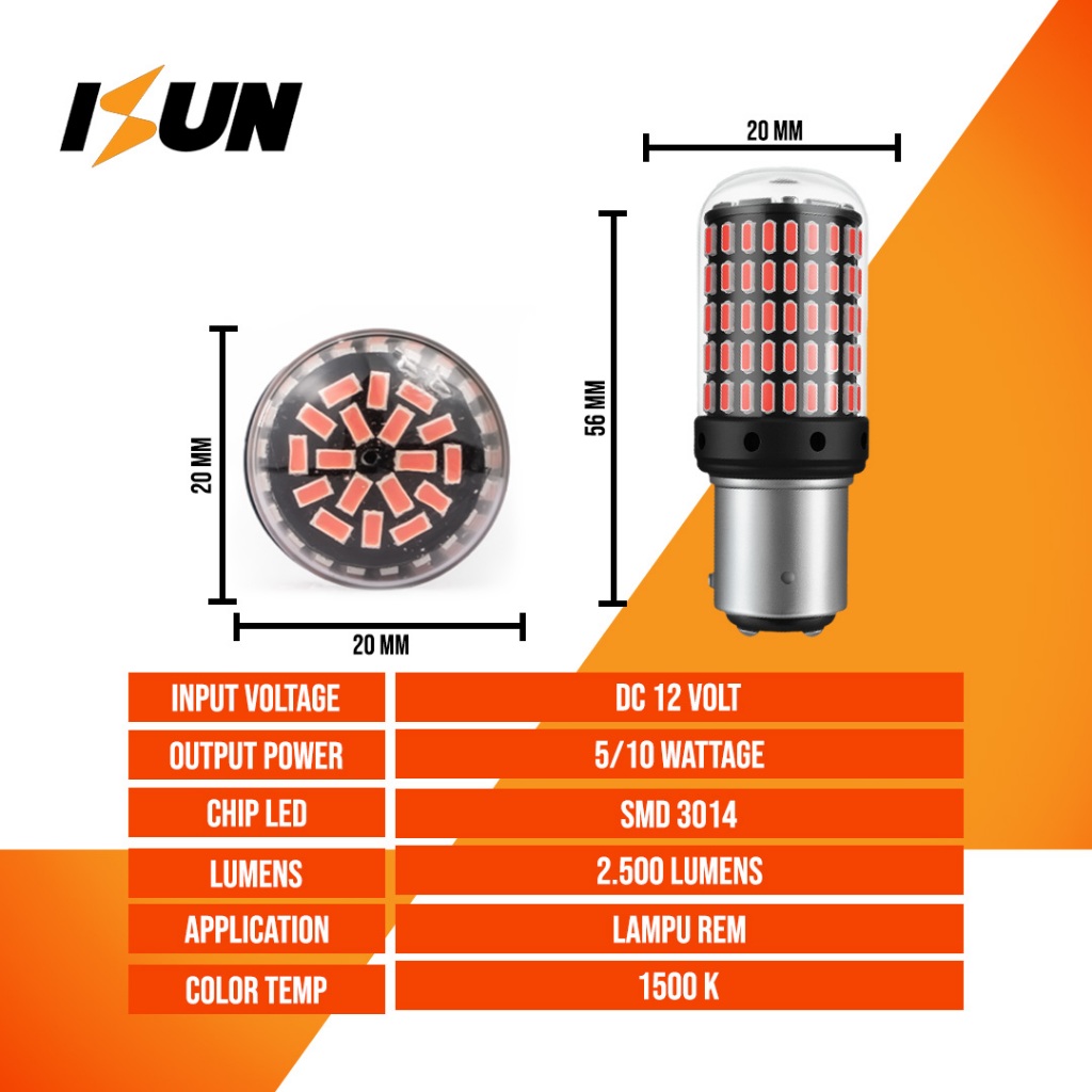 HIGHSEA STORE ISUN 144-Series Lampu LED Rem Brake 1157 BAY15D 144SMD 3014 DC12V/10W