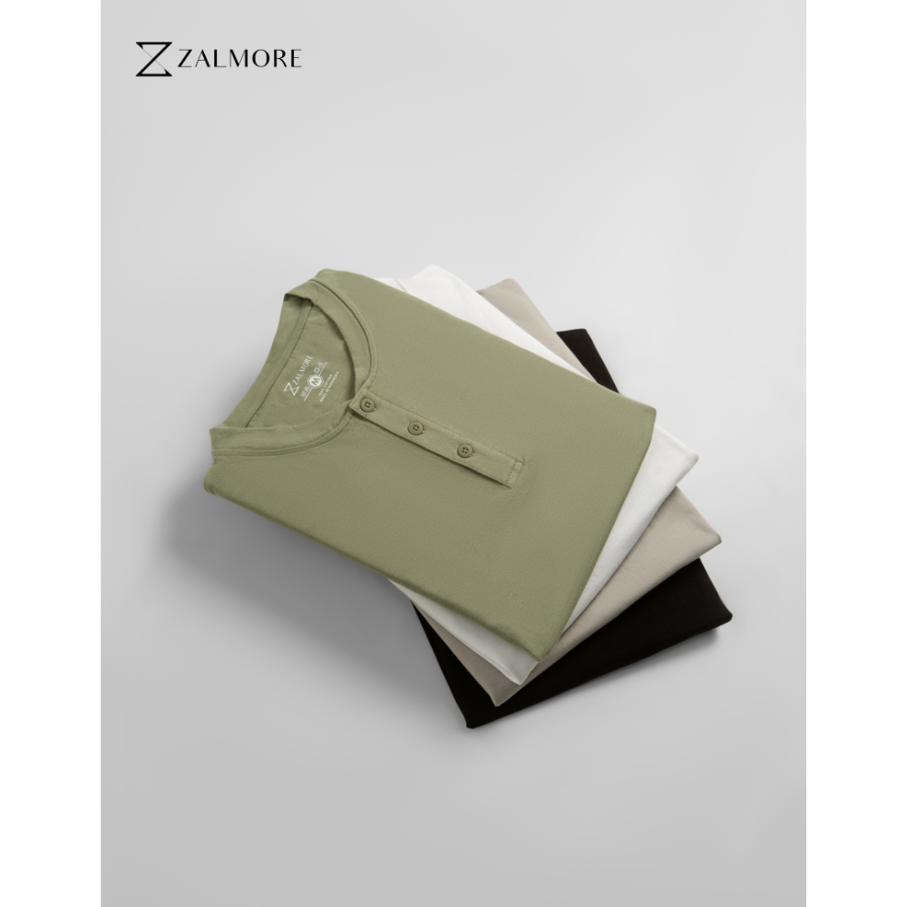 LAUT TINGGI STORE Zalmore Luma Cotton Henley Tee Premium Cotton - Kaos Henley Pria