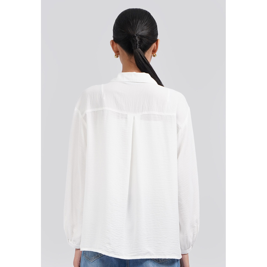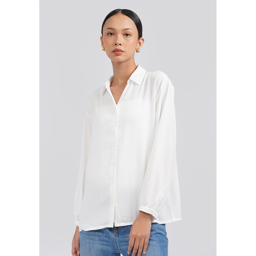 SEALANE STORE Executive V-Neck Long Sleeve Blouse Off White