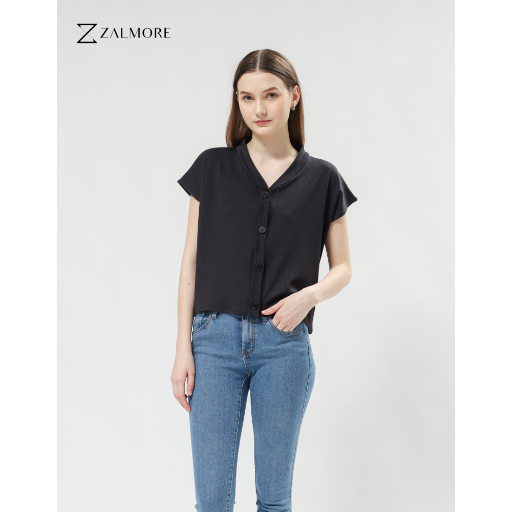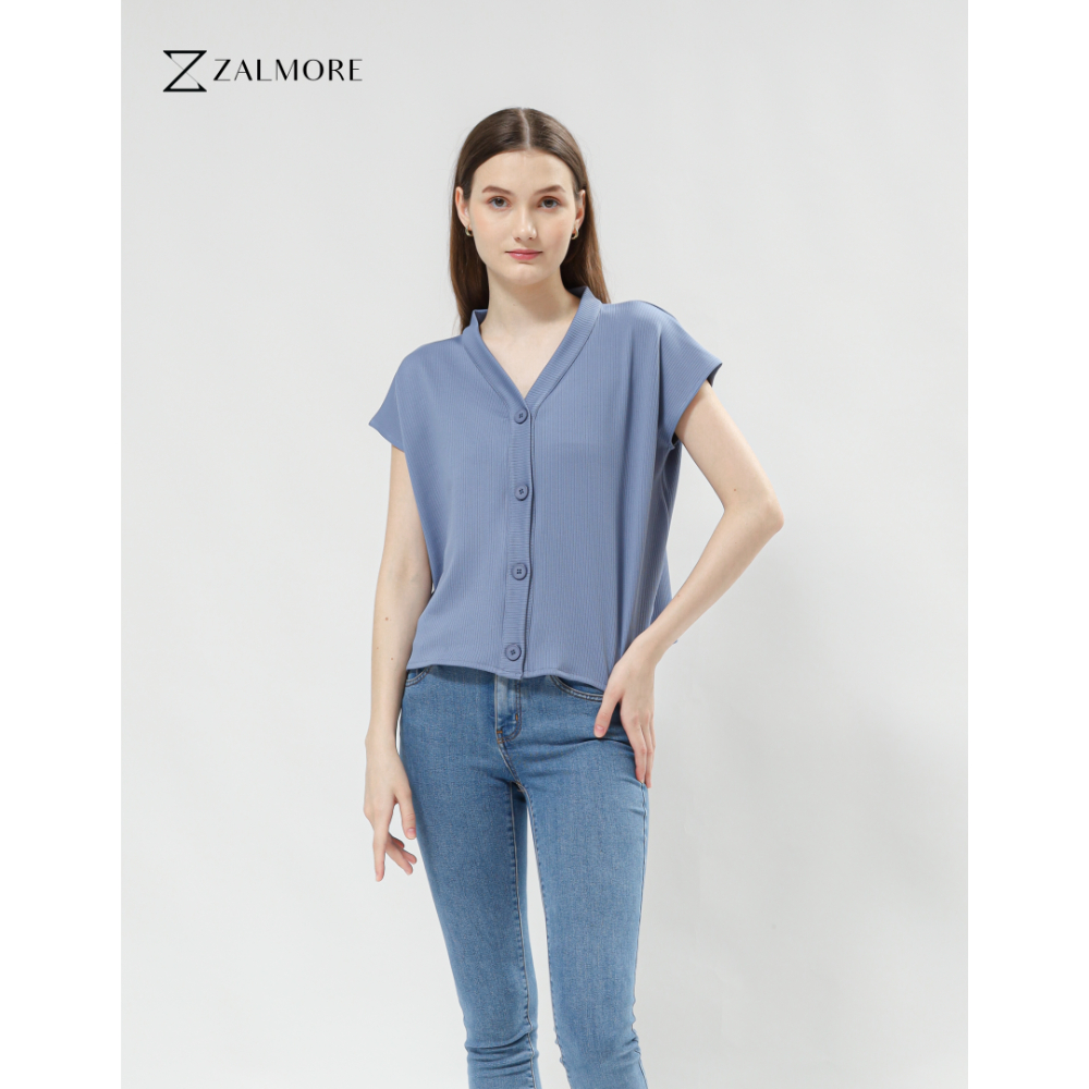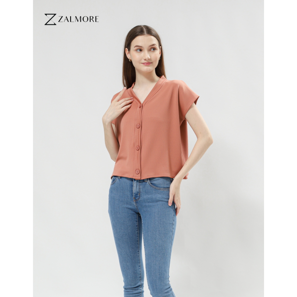 SEALANE STORE Zalmore Vneck Top with Button Premium Knit - Atasan Wanita Kancing
