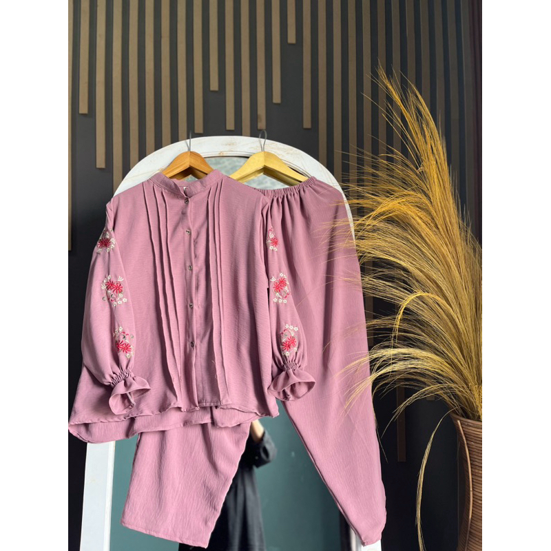 YUKI ONLINE geneaby - Setelan Zoya Set Bordir Bahan Crinkle Airflow Size XL XXL Kancing Aktif