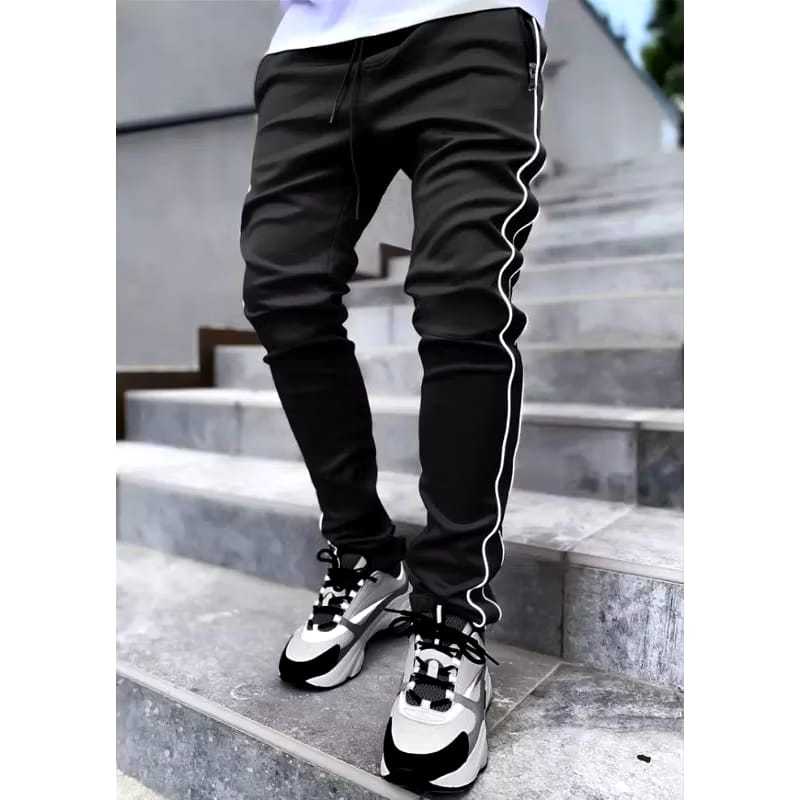 LAUT TINGGI STORE VCRL Celana Pria Hypebeast Hitam List Putih Simple Bahan Scuba Streach Premium Slim Fit Korean Style