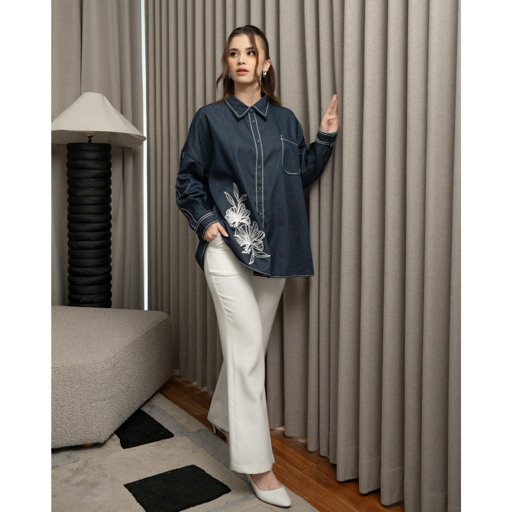 SEALANE STORE Mayoutfit x Dinan Fajrina Rainca Shirt | Kemeja Denim Wanita Basic Bordir Embroidery