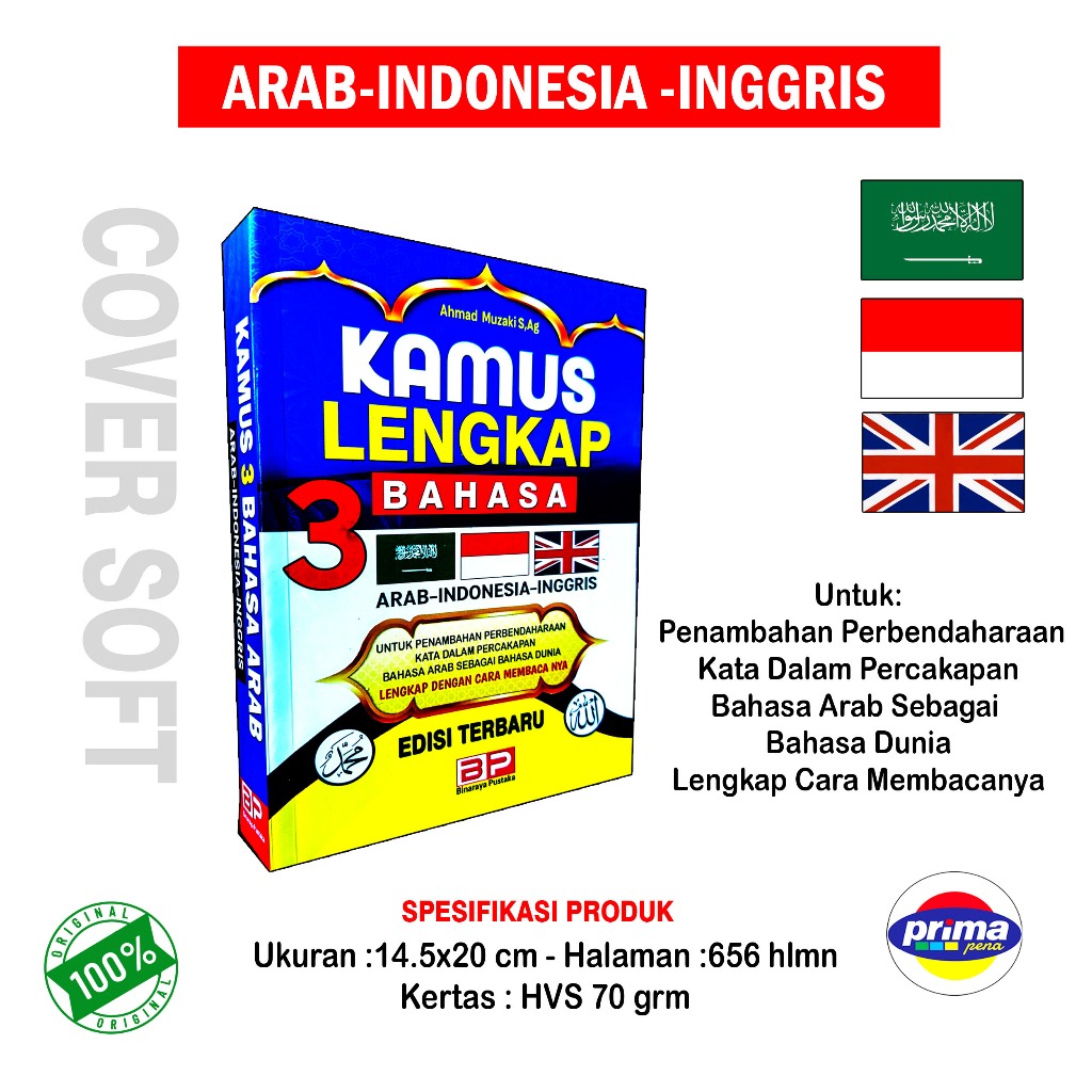 Kamus 3 Bahasa Arab Terbaru dan Lengkap/ARAB-INDONESIA-INGGRIS/HVS/Warna Biru/BP