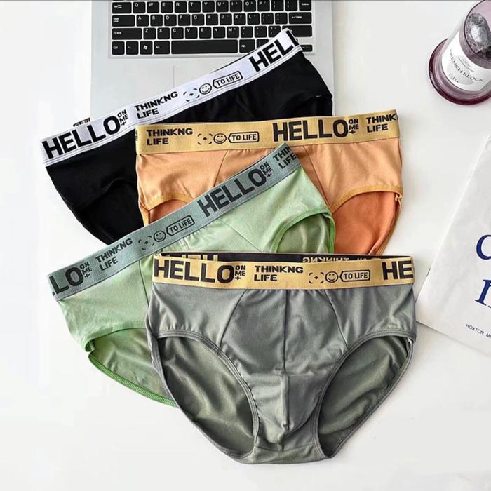 GRATIS ONGKIR ! 3, 6, 12PCS CD HAODE 3106 CELANA DALAM PRIA KATUN LEMBUT NYAMAN HELLO SPANDEX COWOK - 3PCS, XL