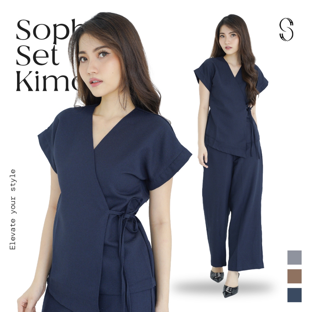 YUKI ONLINE Halostylo Sophia Set Setelan Wanita Atasan Kimono + Celana Kulot Panjang