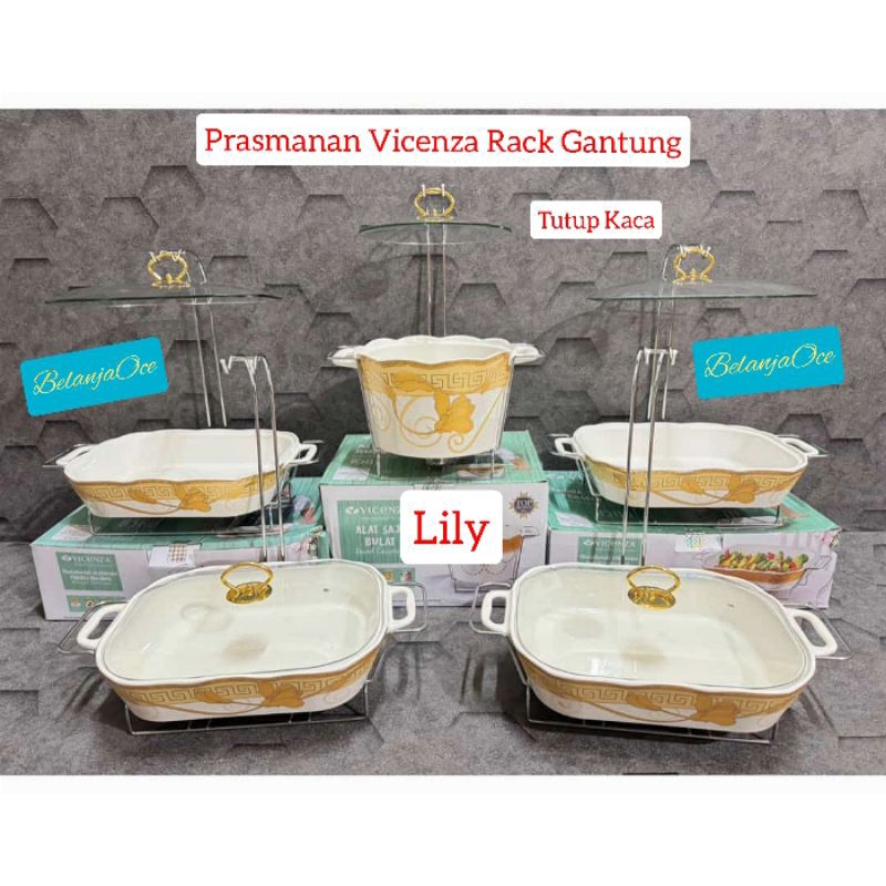 [Packing Kayu] Prasmanan Set Pesta Vicenza Keramik Marble Rack Gantung 5 Buah - Set Tempat Makan Kramik Terbaik