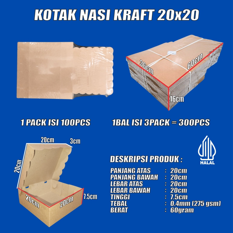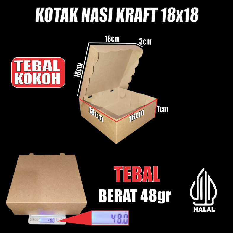 Kotak Nasi Box Catering Tebal 63gr u Dus Mika 18x18 / 20x20 Duplex Putih Kraft Coklat Pack JSP Murah Gratis Ongkir Garan