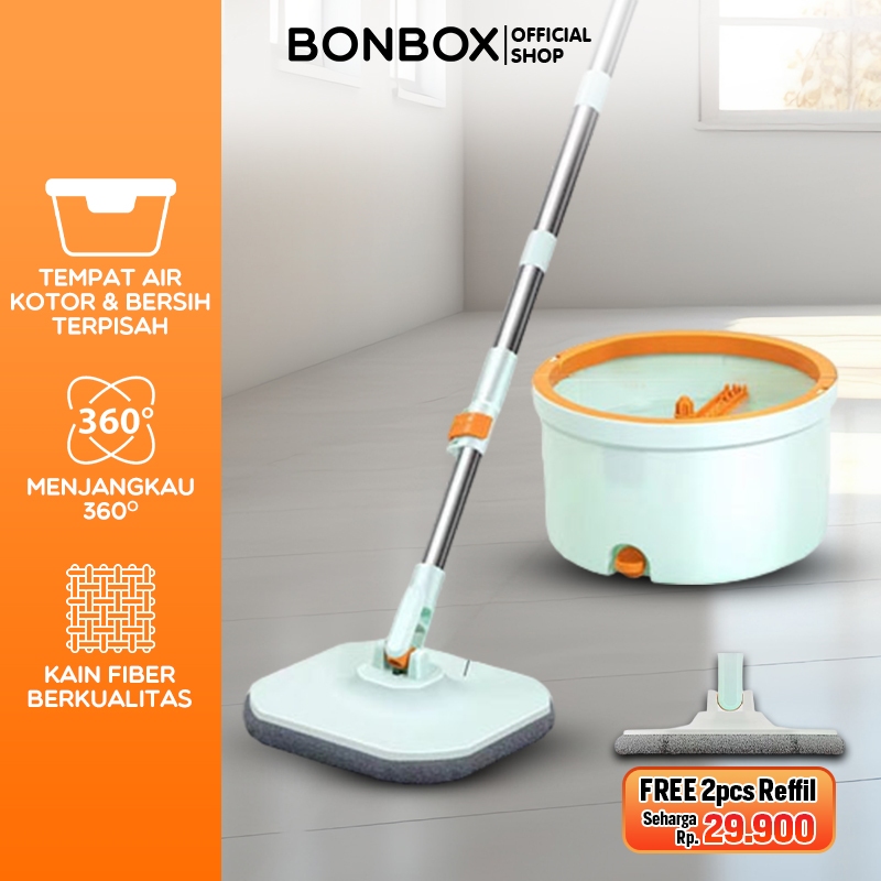 【READY STOCK】BONBOX Alat Pel Lantai Air Kotor & Bersih Terpisah FREE 2Kain Refill BX-CT2-40701