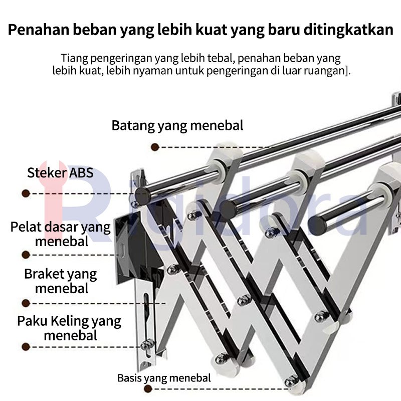 Rigidora Jemuran Baju Tempel Dinding Tiang Penjemur Pakaian Lipat Stainless Steel