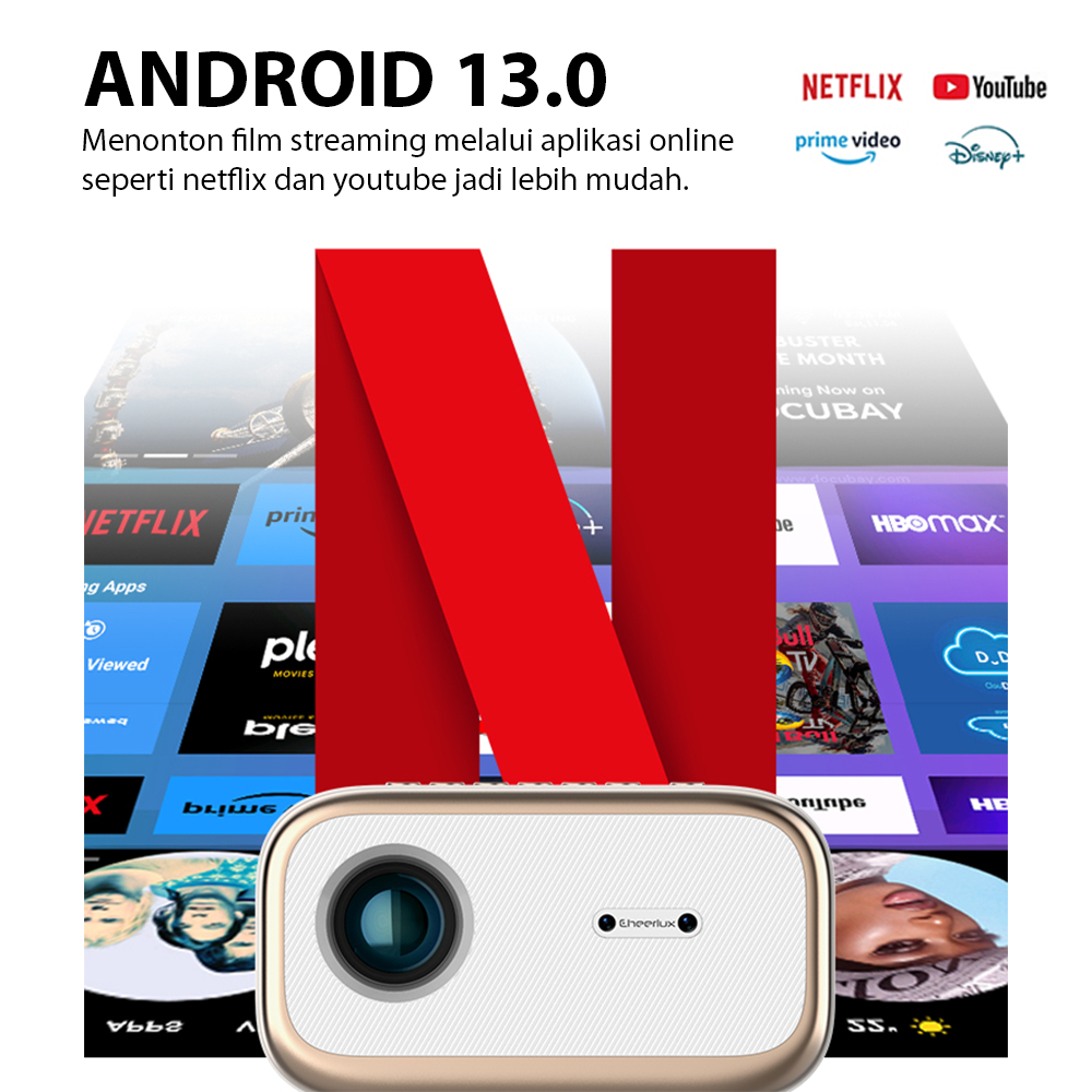 Proyektor Cheerlux E1 Android 13 Netflix Certified 3200 Lumens 1080P FHD | Projector Cheerlux E1 Android Wifi Mirroring