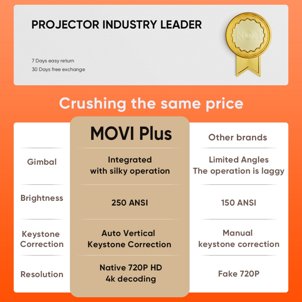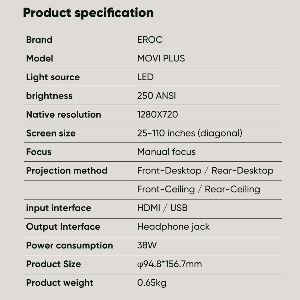 EROC Smart Mini Proyektor LED Android 11 - 250 ANSI Gimbal 180 Rotation Display 110 Inch - MOVI PLUS
