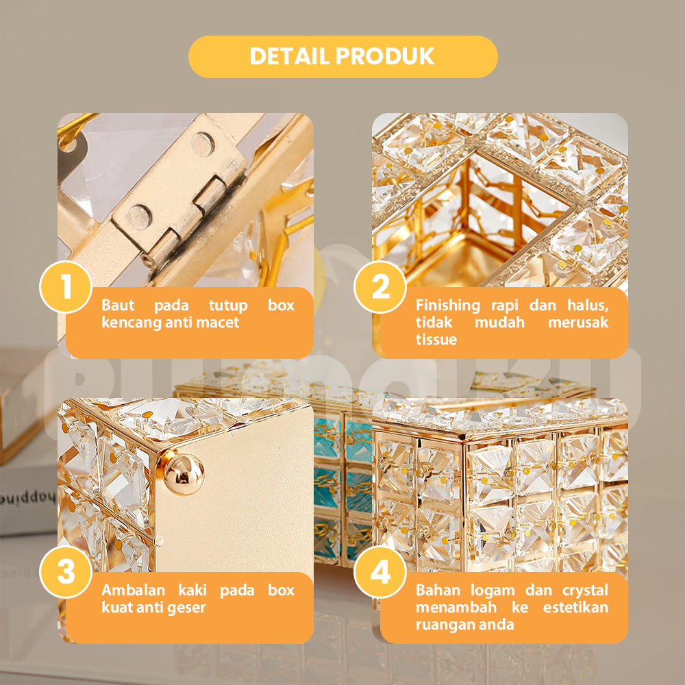 Rumaku Kotak Tisu Tempat Penyimpanan Tisu Kristal Premium Wadah Tissue Emas Mewah