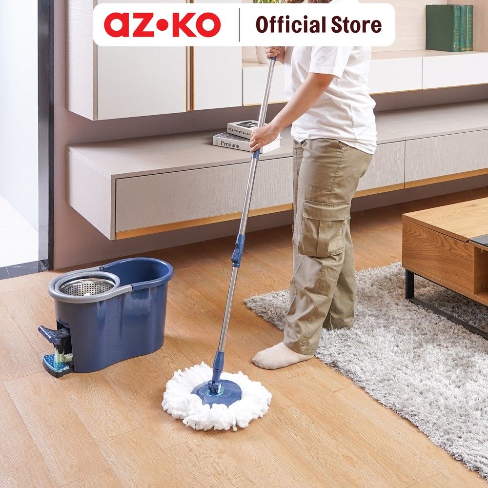 AZKO Proclean Set Alat Pel Putar Dengan Ember Peras 2 In 1 - Biru Set Mop Wringers And Bucket Alat Pembersih Lantai Alat
