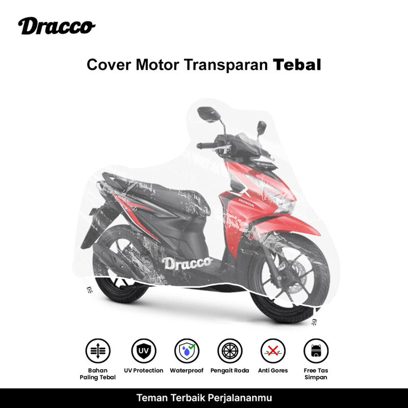 HIGHSEA STORE Cover Motor Transparan DRACCO Tebal – Sarung Anti Air & Debu, Waterproof, UV Protection + Tas simpan
