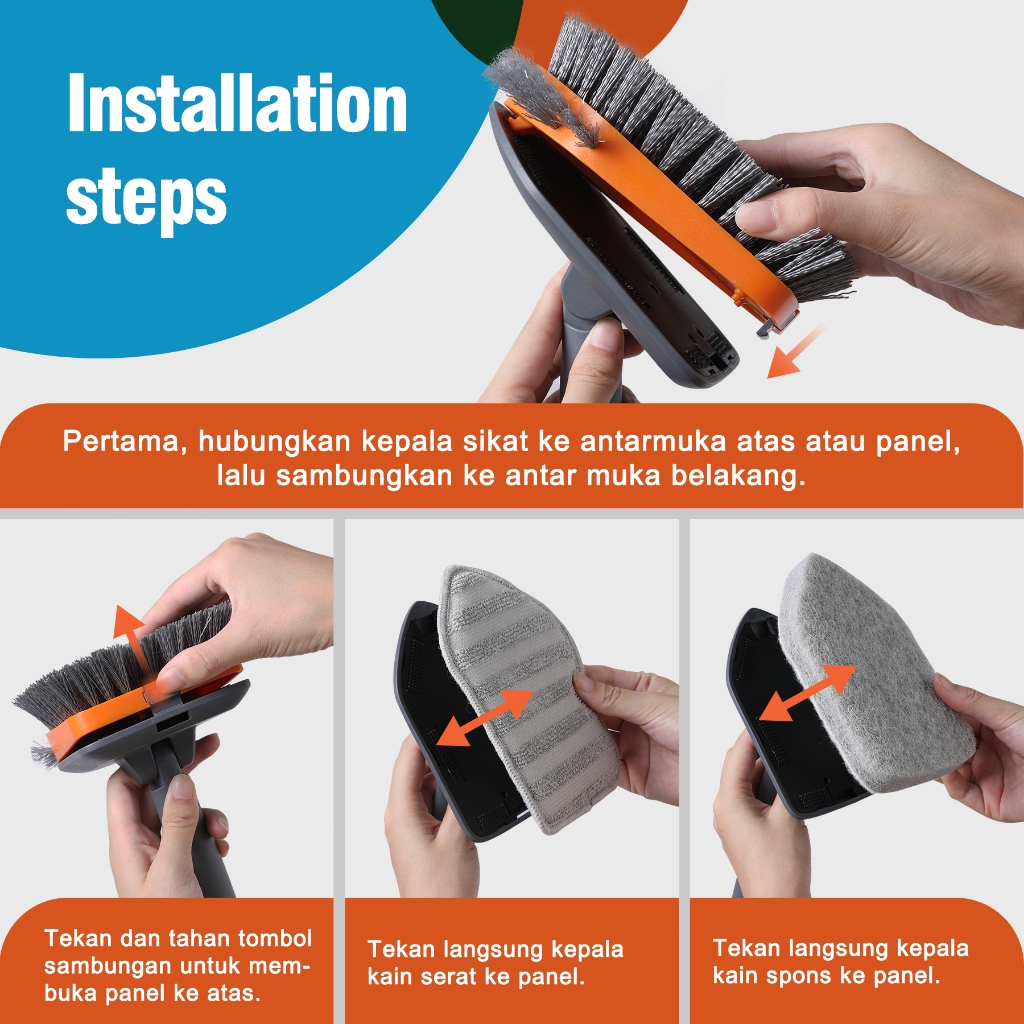 BOOMJOY 3-in-1 Sikat Kamar Mandi Multifungsi, dengan pegangan panjang yang dapat disesuaikan, berfungsi sebagai sikat pe