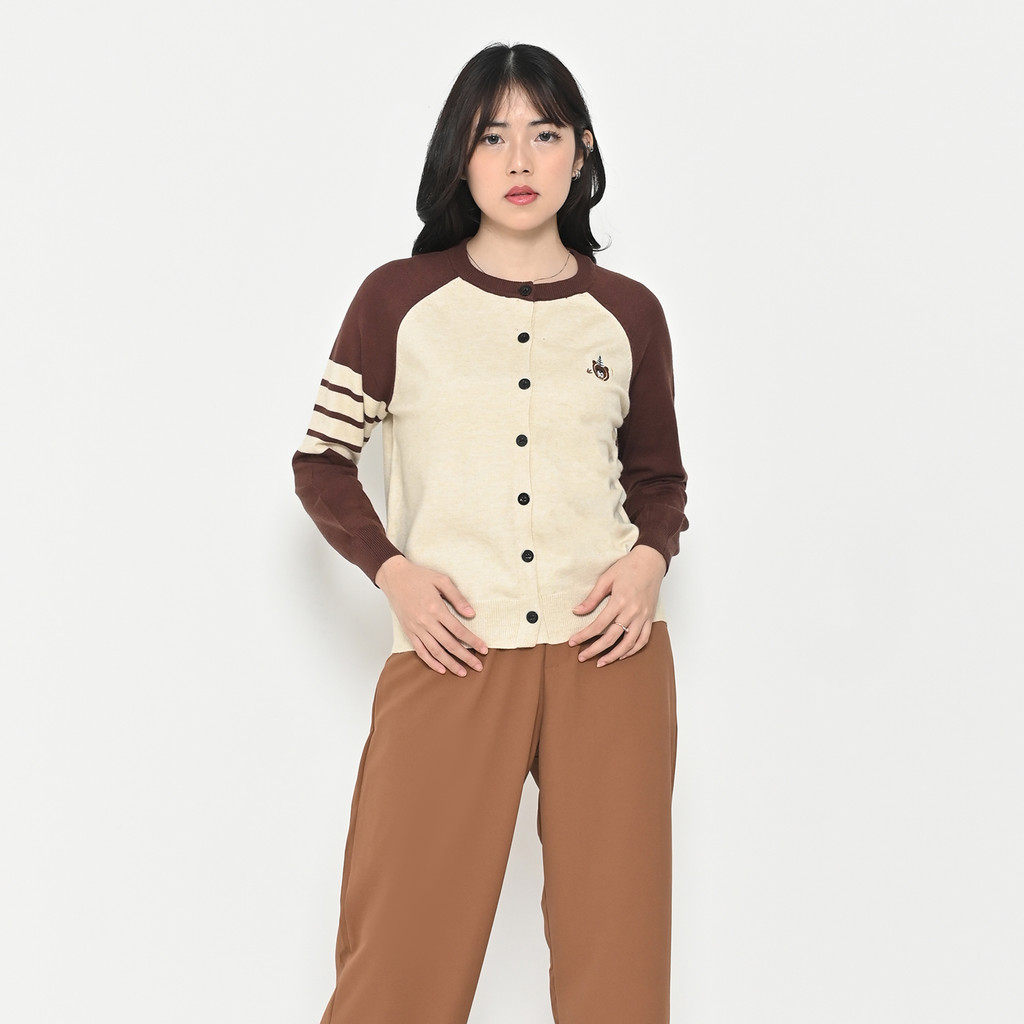 SEALANE STORE QUEENTIN Cardigan Wanita Rajut 3133-3 Viscose Polyamide Slub Knit Bordir Lengan Panjang Reglan