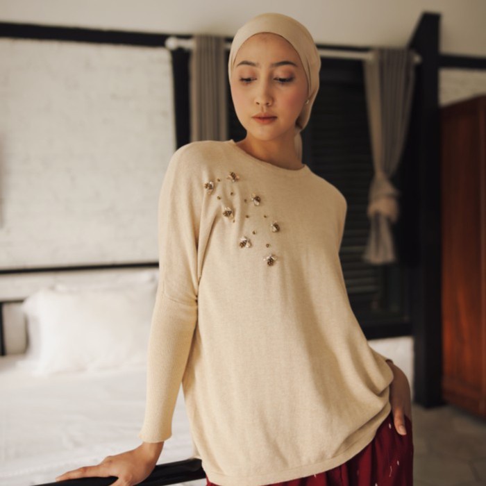 SEALANE STORE Dama Kara Nahla Sweater Beads Rajut