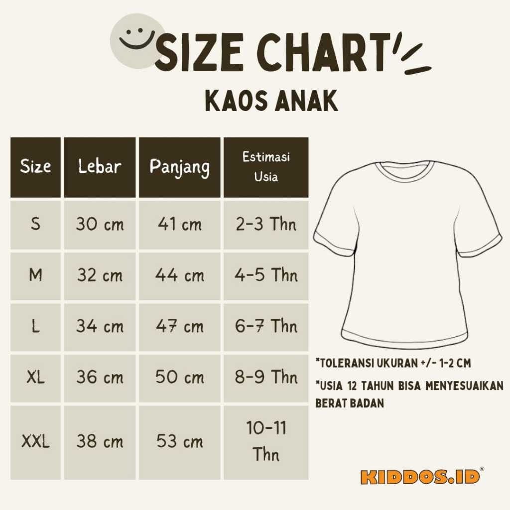 S(2-3 Tahun), M(4-5 Tahun), L(6-7 Tahun), XL(8-9 Tahun), XXL(10-11 Tahun)