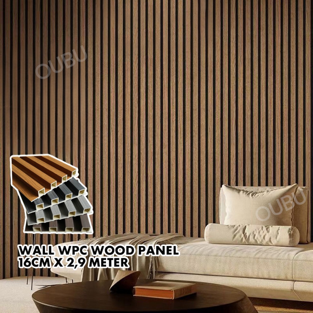 ()Woodpanel Dinding WPC Kisi Kisi Kayu 160x22mm 2.9Meter WPC Aesthetic Dinding Motif Kayu 3D / Pvc Wall Panel