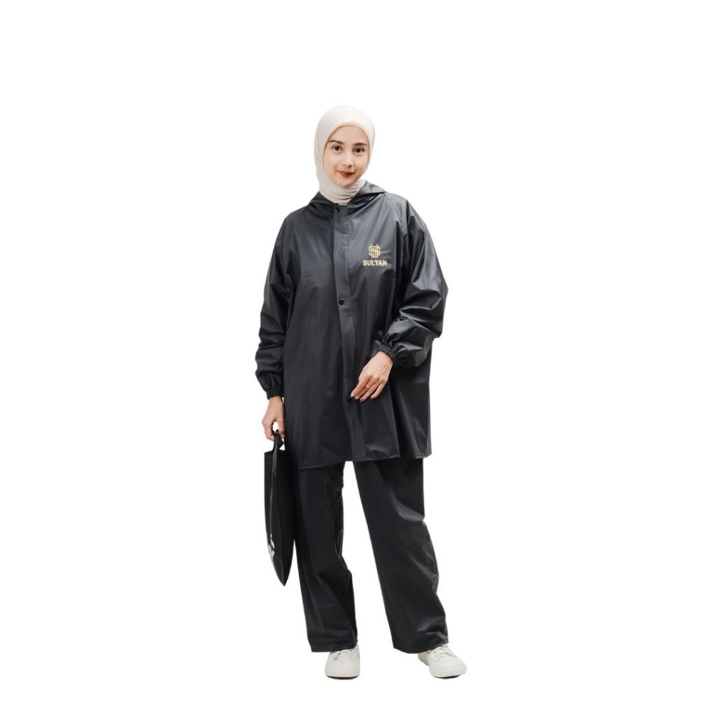 HIGHSEA STORE SULTAN Jas Hujan Setelan Pria Wanita Setelan Baju + Celana Dewasa Hitam