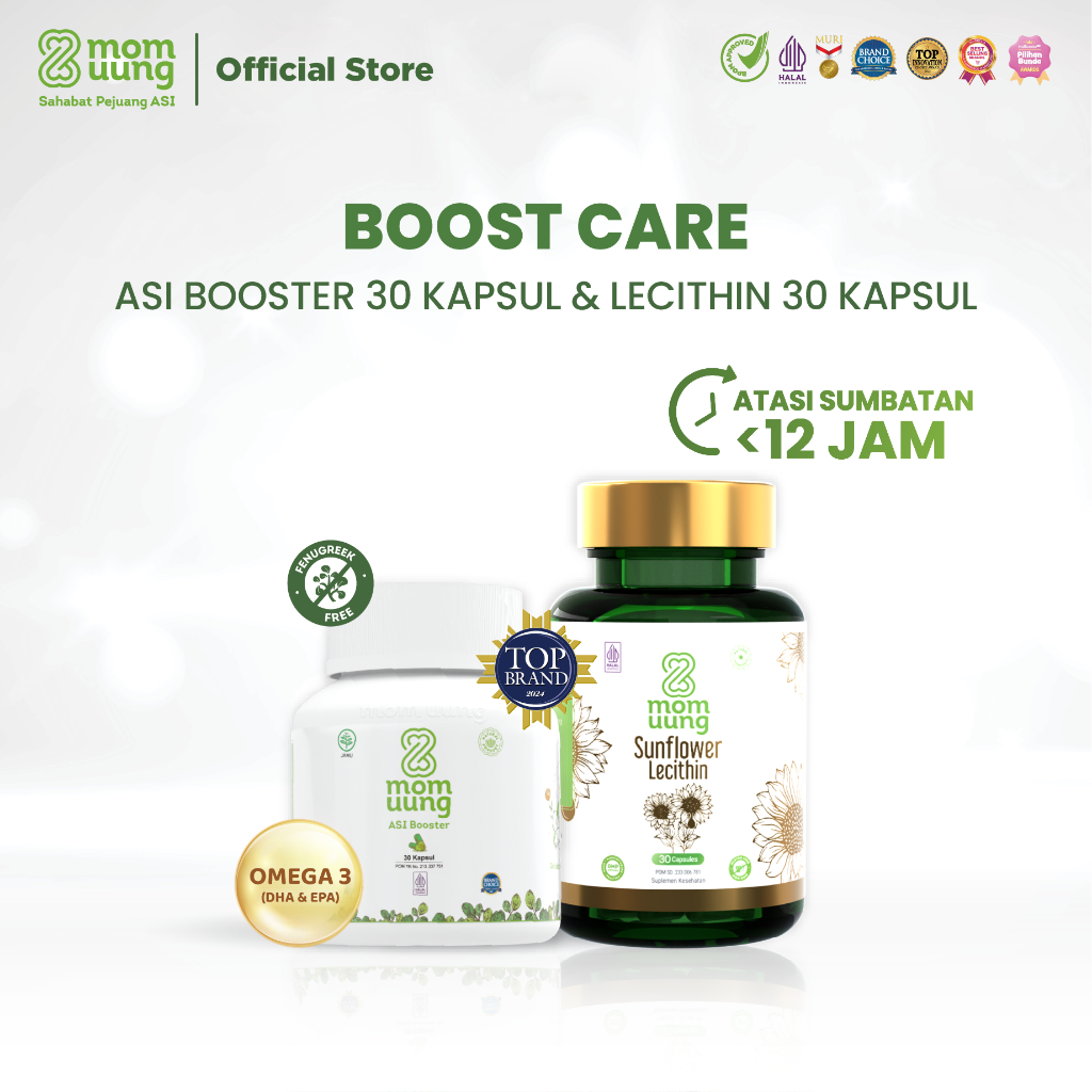 Mom Uung Bundling ASI Booster 30 Kapsul - 60 Kapsul + Sunflower Lecithin - Pelancar ASI Halal BPOM