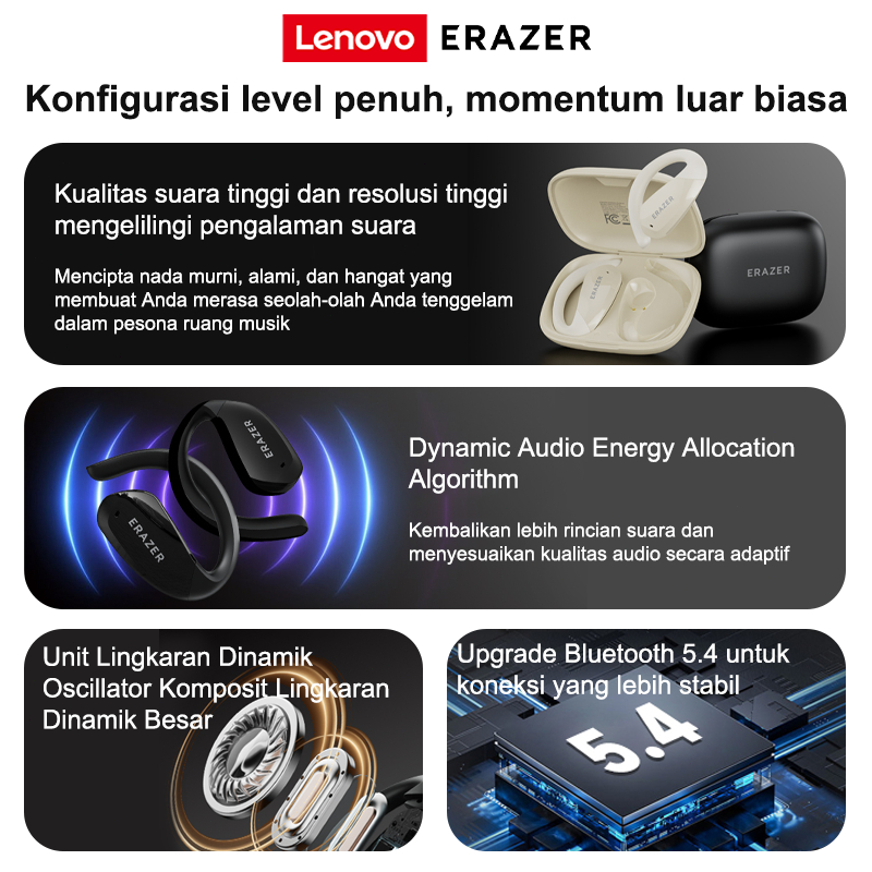 HIGHSEA STORE Lenovo ERAZER XF30 Open-Ear Earphone Bluetooth 5.4 OWS Bass Boost Headset IPX5 Sport Earbud