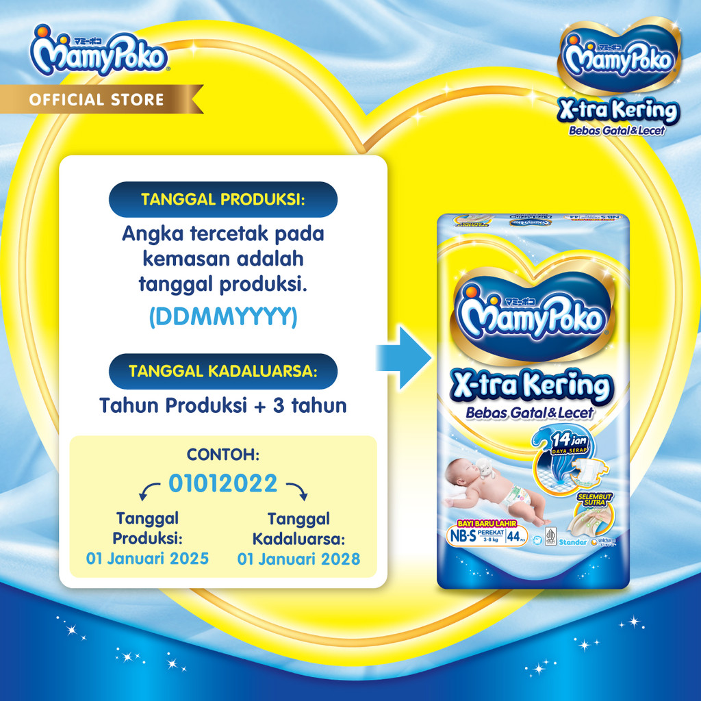 MamyPoko X-tra Kering - NB-S 44 - Popok Perekat Newborn Bayi Baru Lahir- 2 Packs