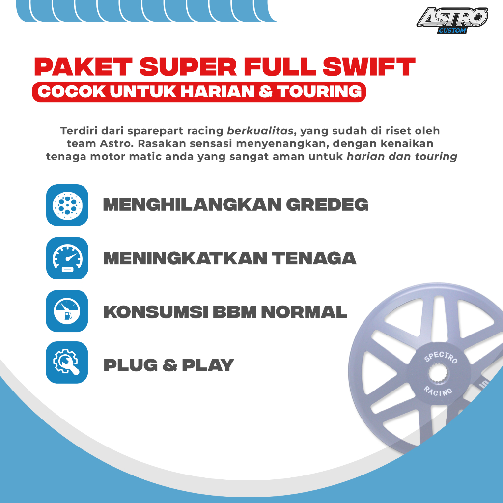 Paket Super Full Upgrade Vario 125 150 PCX ADV STYLO 160 Mangkok Ganda Swift Daytona Vanbelt Pulley Roller Per Spectro R