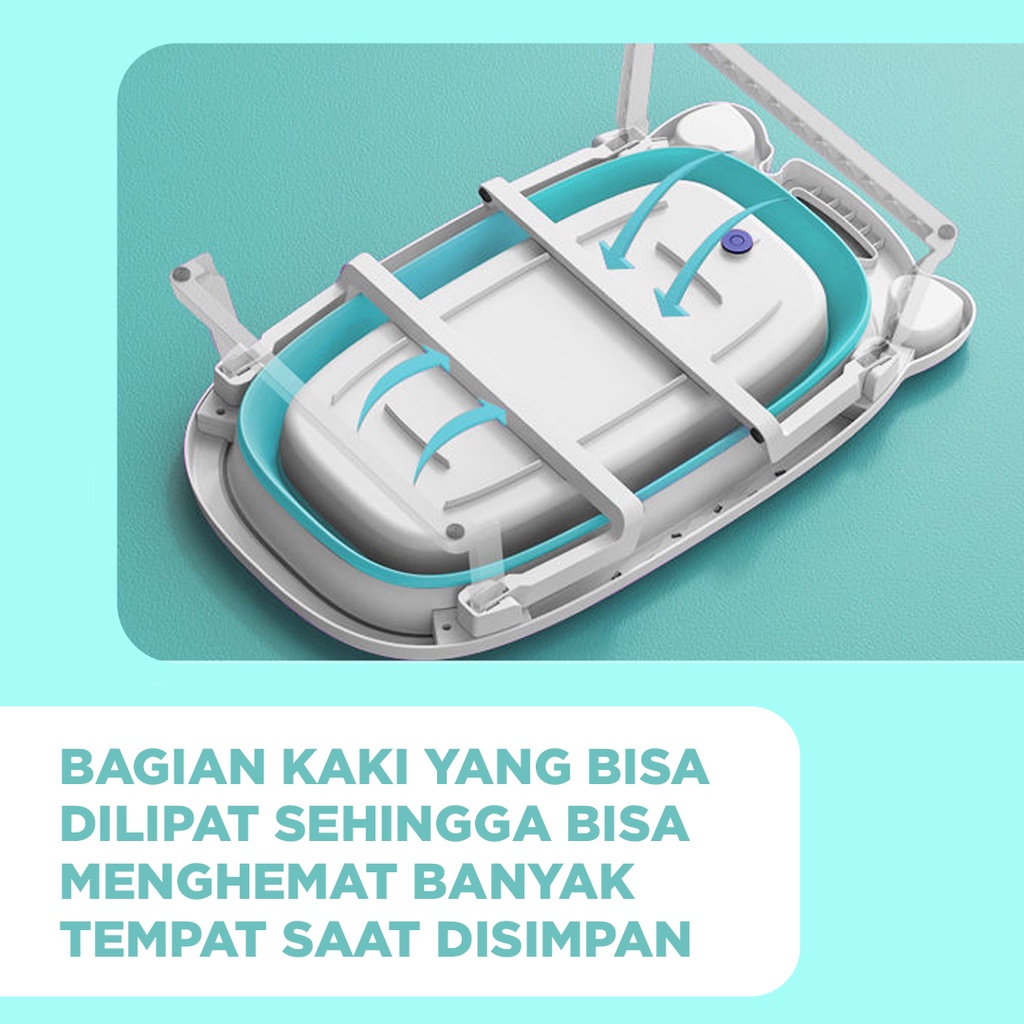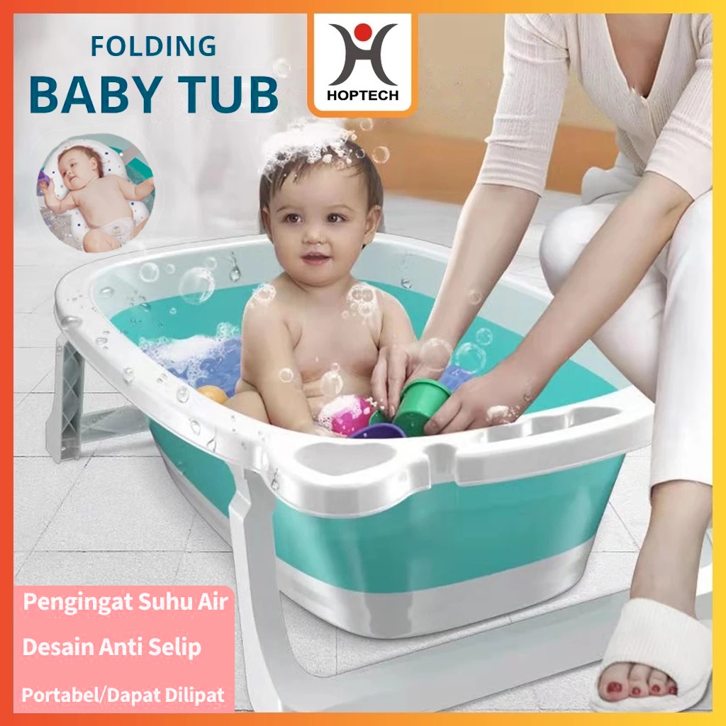 Hoptech - Foldable Baby Bath Tub dengan Pengukur Suhu & Bantal Mandi | Bak Mandi Bayi Portable Lipat