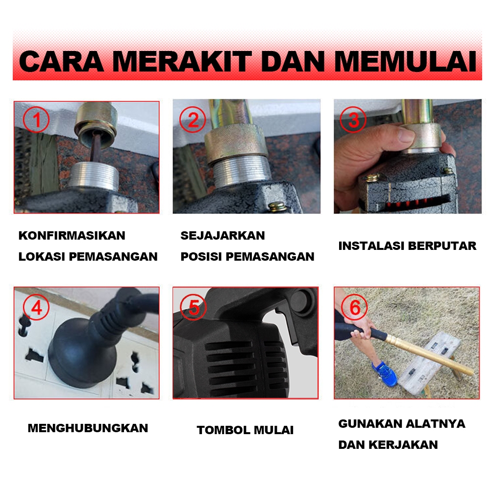 JLD Mesin Bor Pengetar Beton Listrik 1100W Pemadat Cor Semen Beton Tembok Portabel Beton Cor Coran