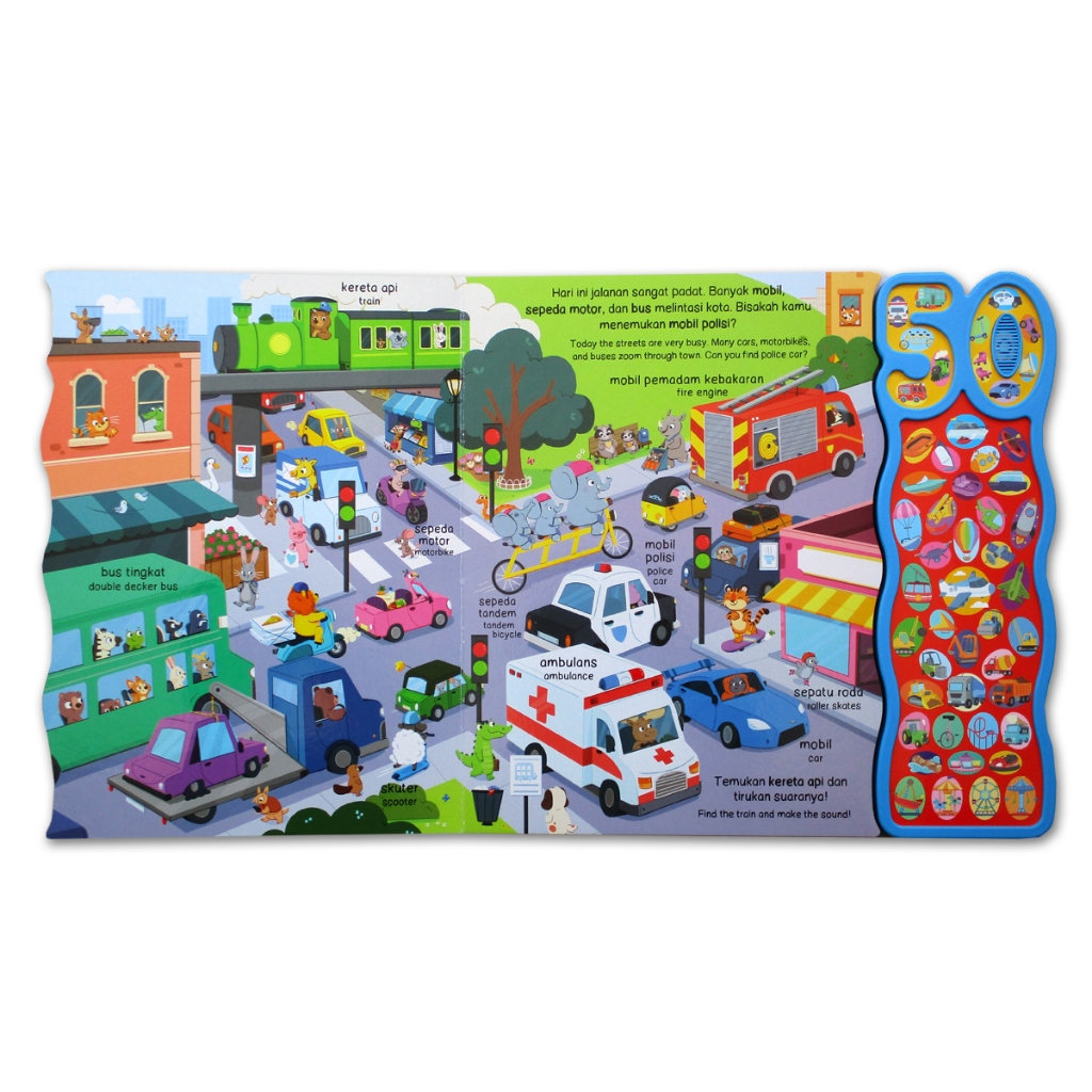 50 Sounds Kendaraan / Peternakan Sound Board Book (Bahasa Indonesia & English) [GinukGinuk] - Sound Book - Buku Bersuara