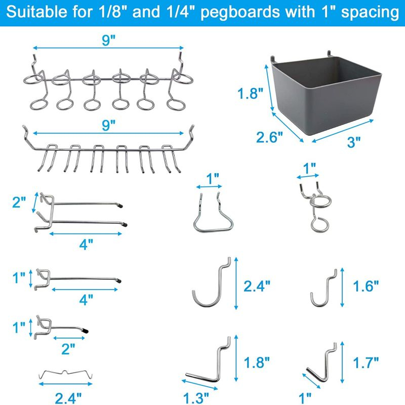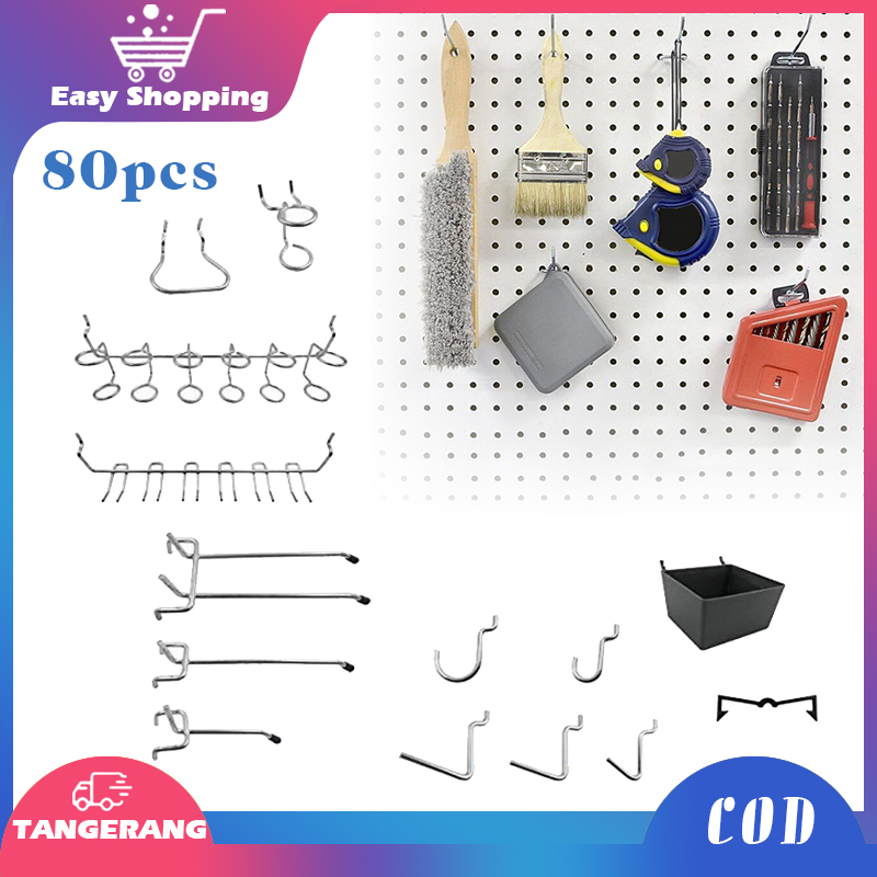 80Pcs Pegboard Hook Rak Dinding Perkakas Triangle Hook Ram Cantolan Pegboard Pengait Pegboard Kait Pegboard