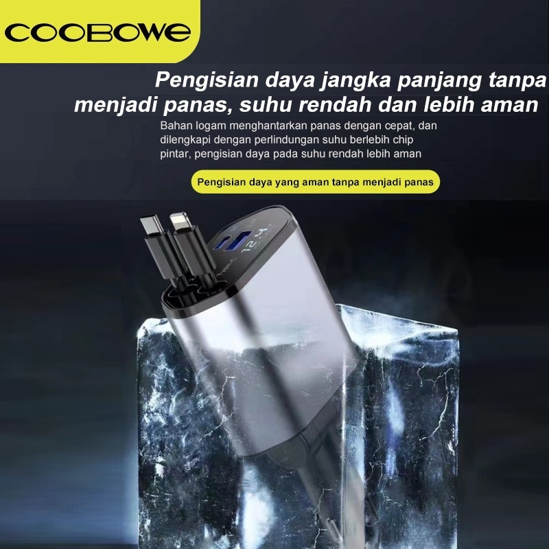 HIGHSEA STORE COOBOWE 120W Car Charger fast charging Rectractable Cable 4 In 1 Type-C & Lightning usb adaptor charger Colokan mobil pengisi daya mobil pengisian cepat