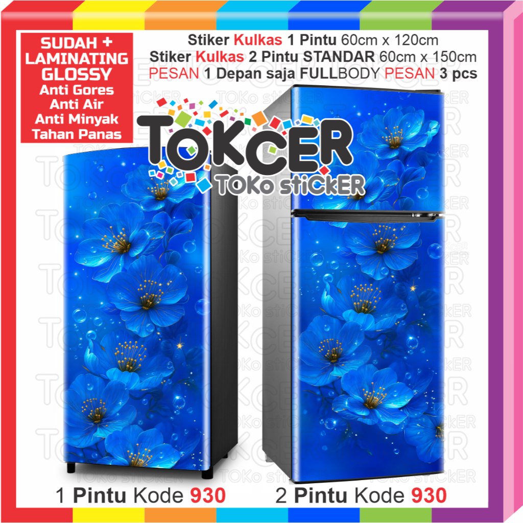 Stiker Kulkas LAMINATING GLOSSY Anti LUNTUR 1 Pintu atau 2 Pintu STANDAR Motif BUNGA KUPU-KUPU Anti GORES