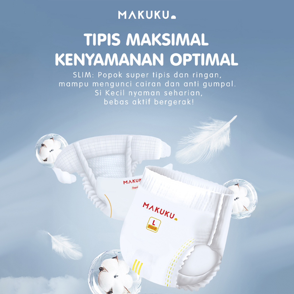 [2 PACK] MAKUKU SAP Diapers Slim / NB28/S38/M32/L34/XL32/XXL28 / Popok bayi Tipis SAP anti gumpal cepat kering sekali pa