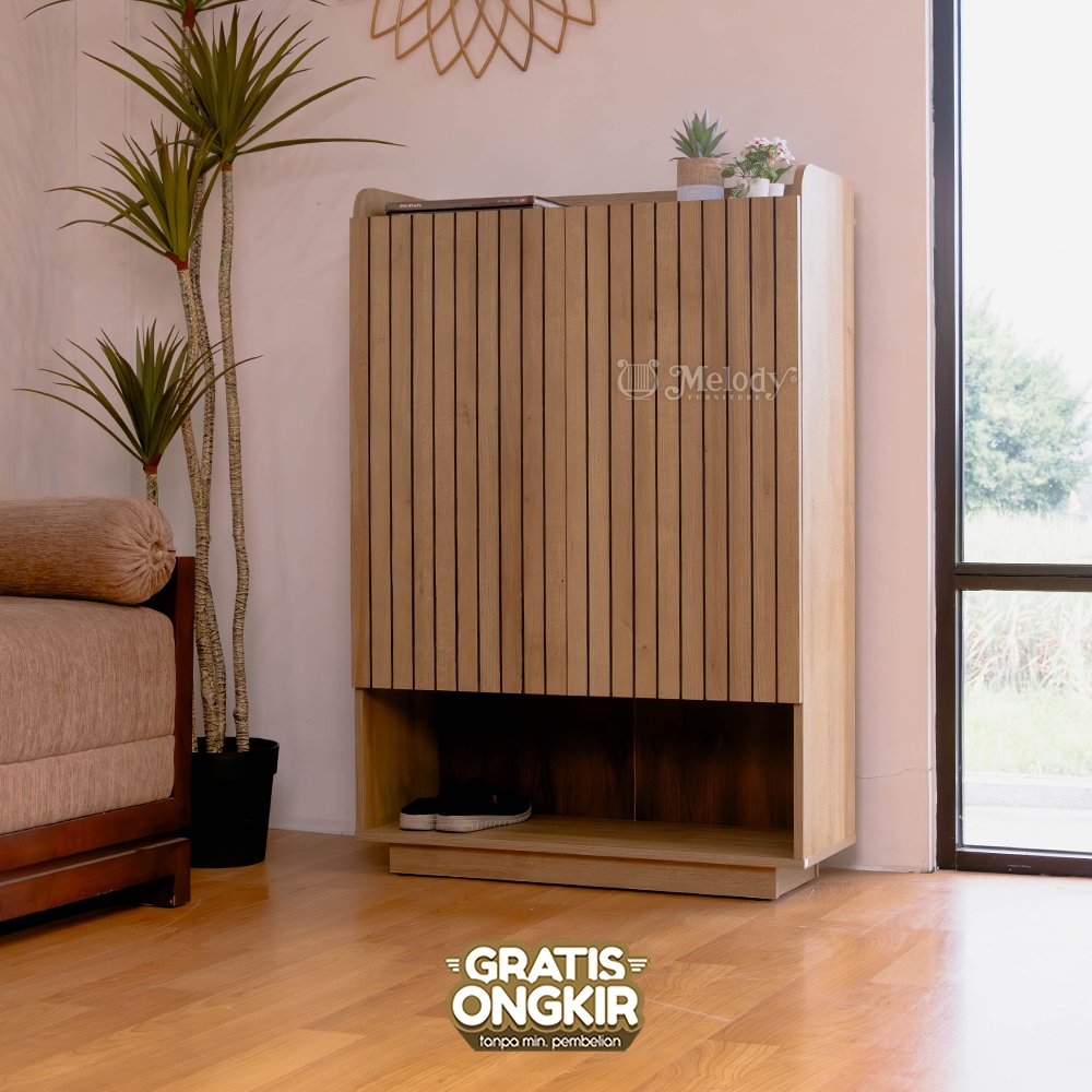 Melody Furniture - Laci Rak Sepatu Japandi RYUKI SHOERACK - Riviera Eichi Rustic Walnut