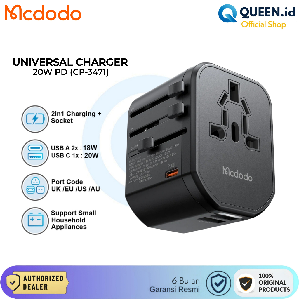 Mcdodo CP-3471 Universal Travel Charger Adaptor 20W PD USB - TYPE C