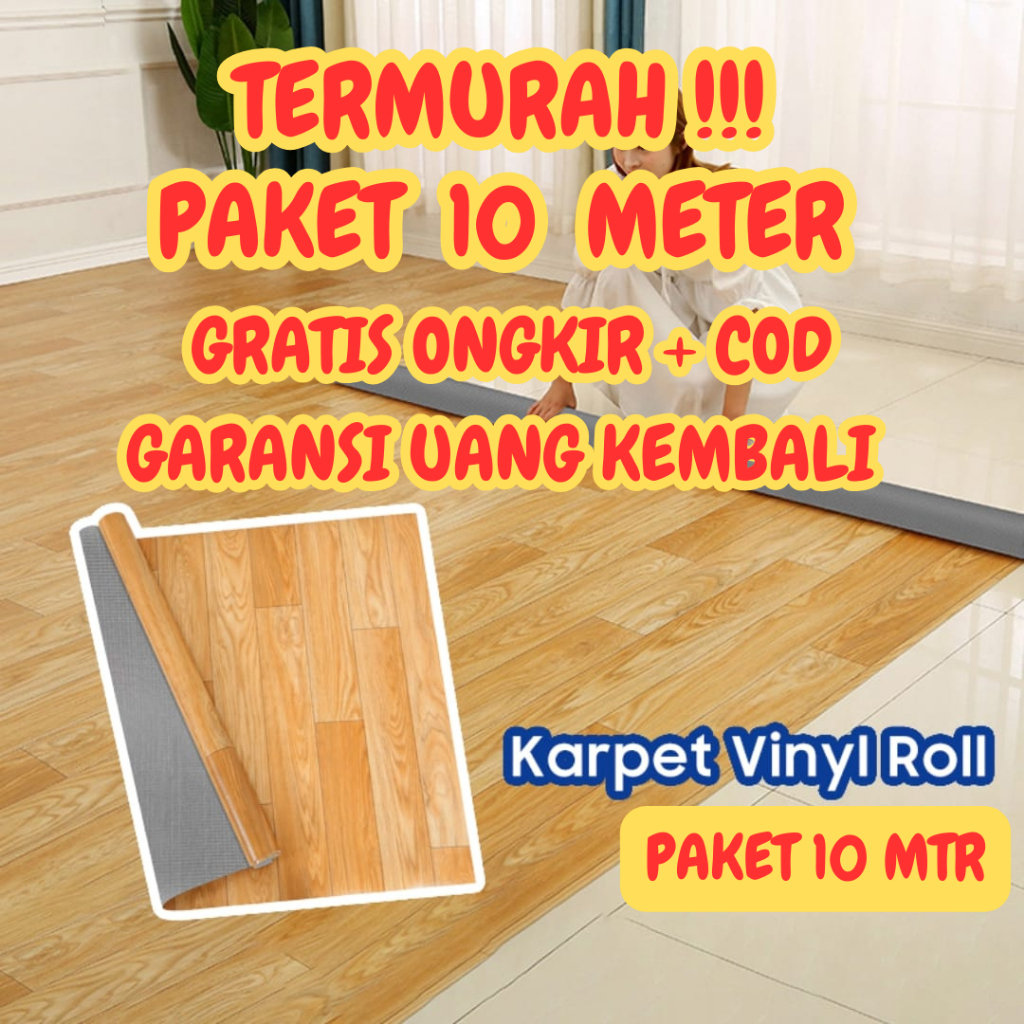 PAKET 10 MTR Karpet Lantai Vinyl Motif Kayu Lebar 1 Mtr Tebal 0.7MM Bahan Tebal Bertekstur