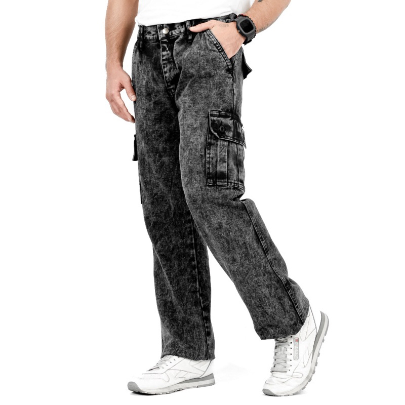 celana premium Celana Cargo Jeans Pria Loose fit Reguler Gombrong / Cargo pants Jeans Reguler Standard Denim washed Blk